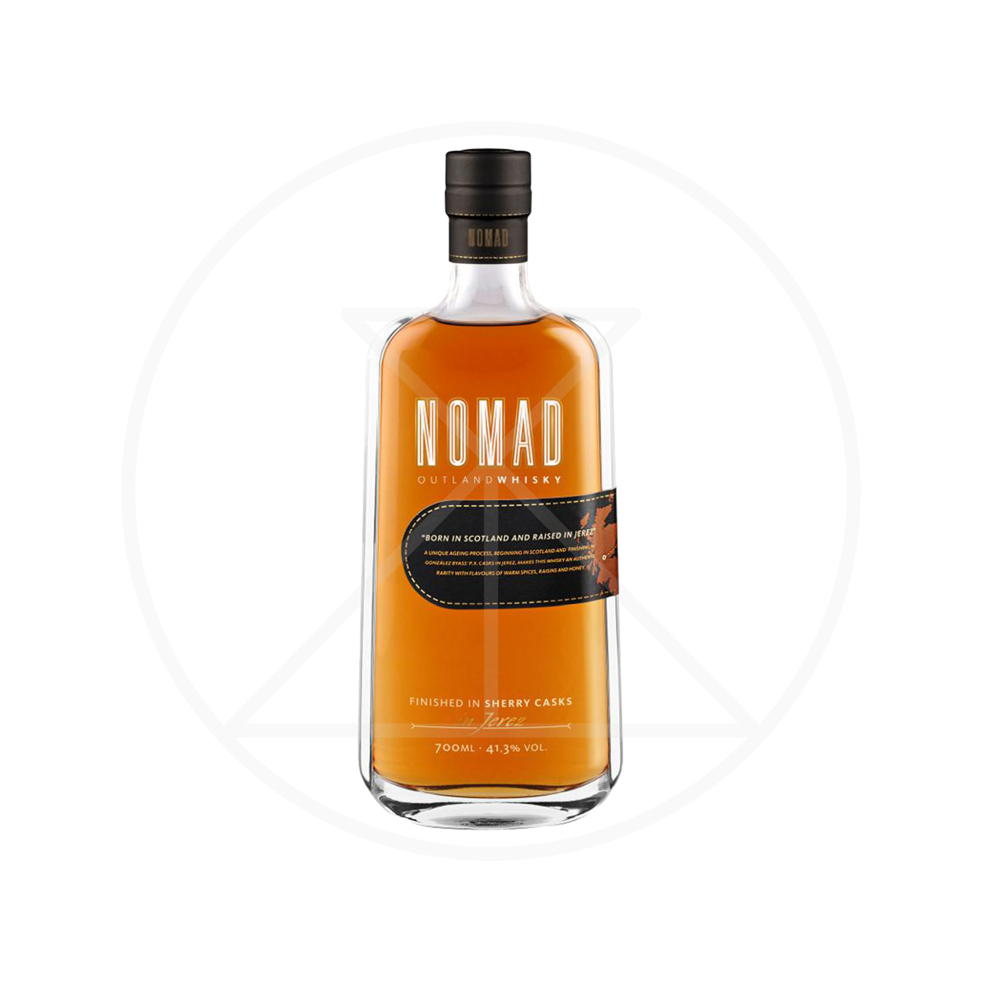 Nomad Outland Whisky is a unique blended Scotch aged in Scotland, then finished in Spain in Pedro Ximénez (PX) sherry casks, resulting in a sweet, rich, complex profile with prominent notes of raisins, caramel, vanilla, dried fruits (figs, sultanas), and toffee, balanced by hints of spice, oak, and chocolate, offering a nutty, syrupy, and warming experience perfect for sherry lovers.